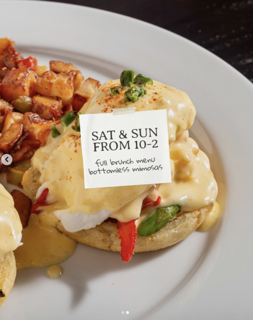 Saturday & Sunday from 10AM–2PM Full brunch menu + bottomless mimosas.