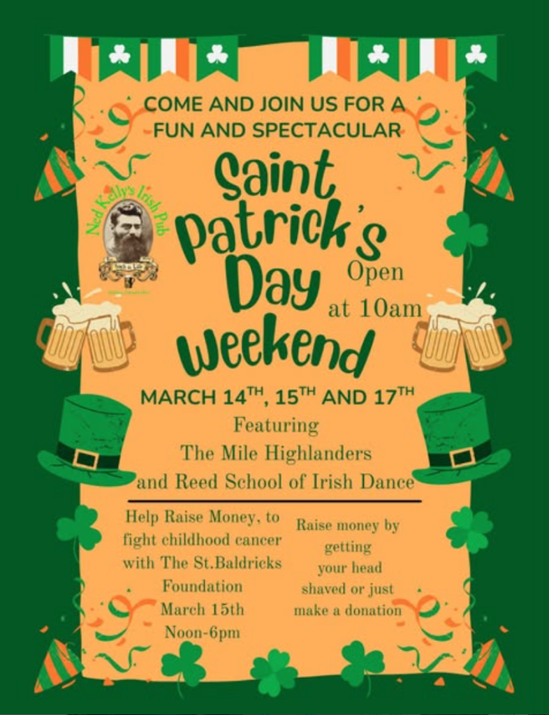 Come join us for a fun and spectacular St. Patrick’s Day Weekend featuring The Mile Highlanders and Reed School of Irish Dance.